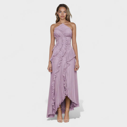 Florencia – Vestido largo bohemio con abertura y volantes.