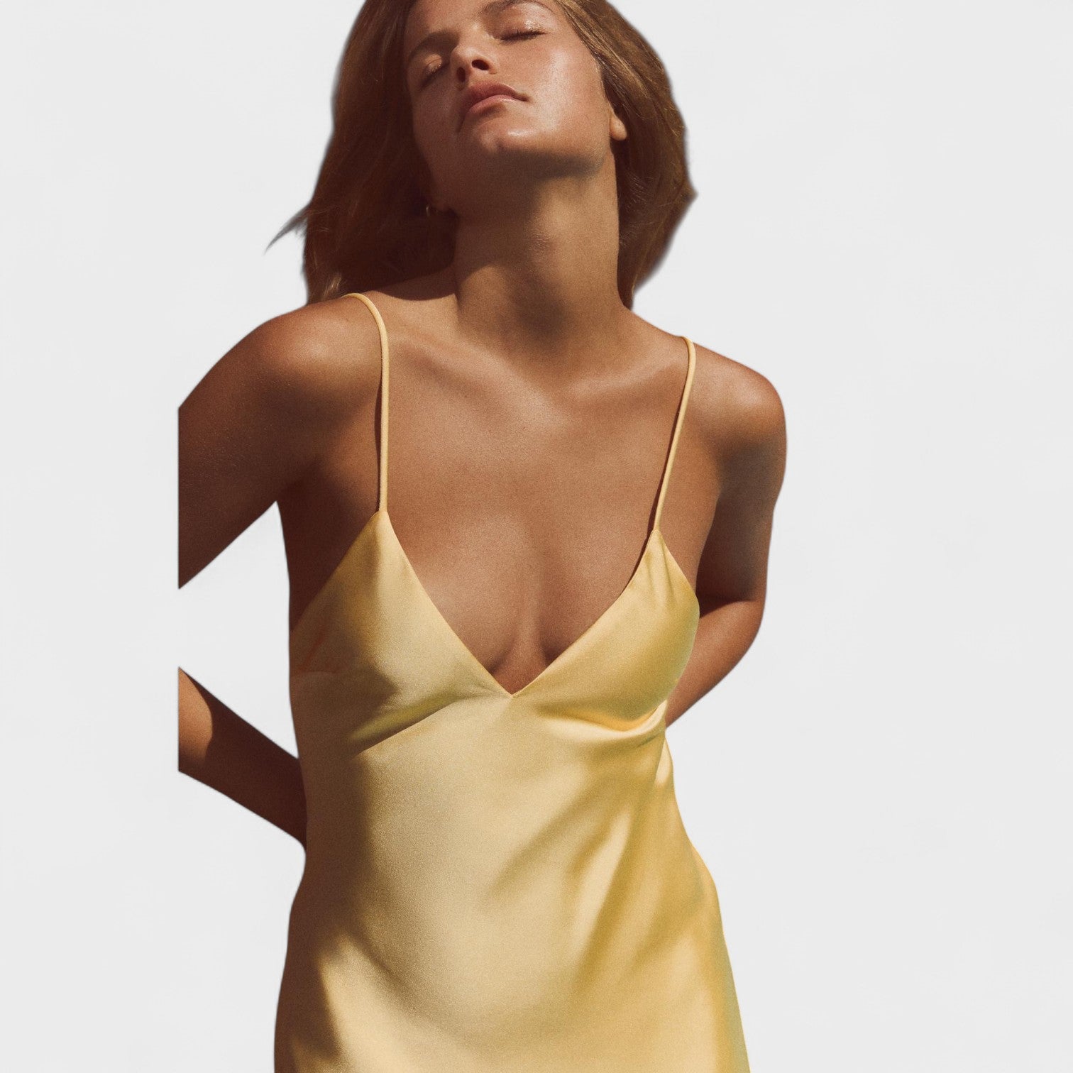 - Satén de caída suave que se adapta al cuerpo con elegancia natural — perfecto para días cálidos y noches especiales