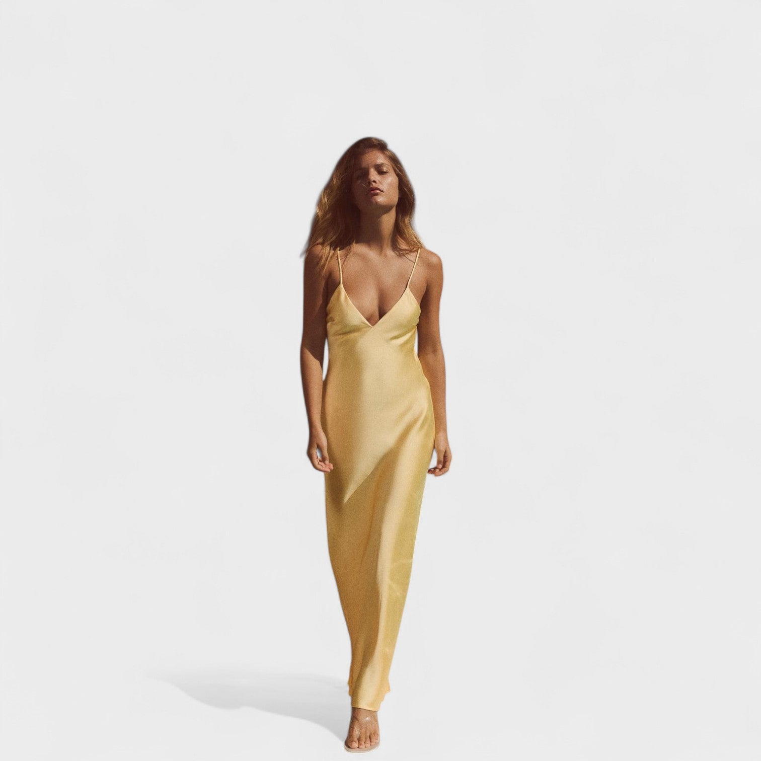 Ligero como la brisa del Mediterráneo y sensual como una puesta de sol: este vestido fue creado para mujeres que brillan sin esfuerzo.