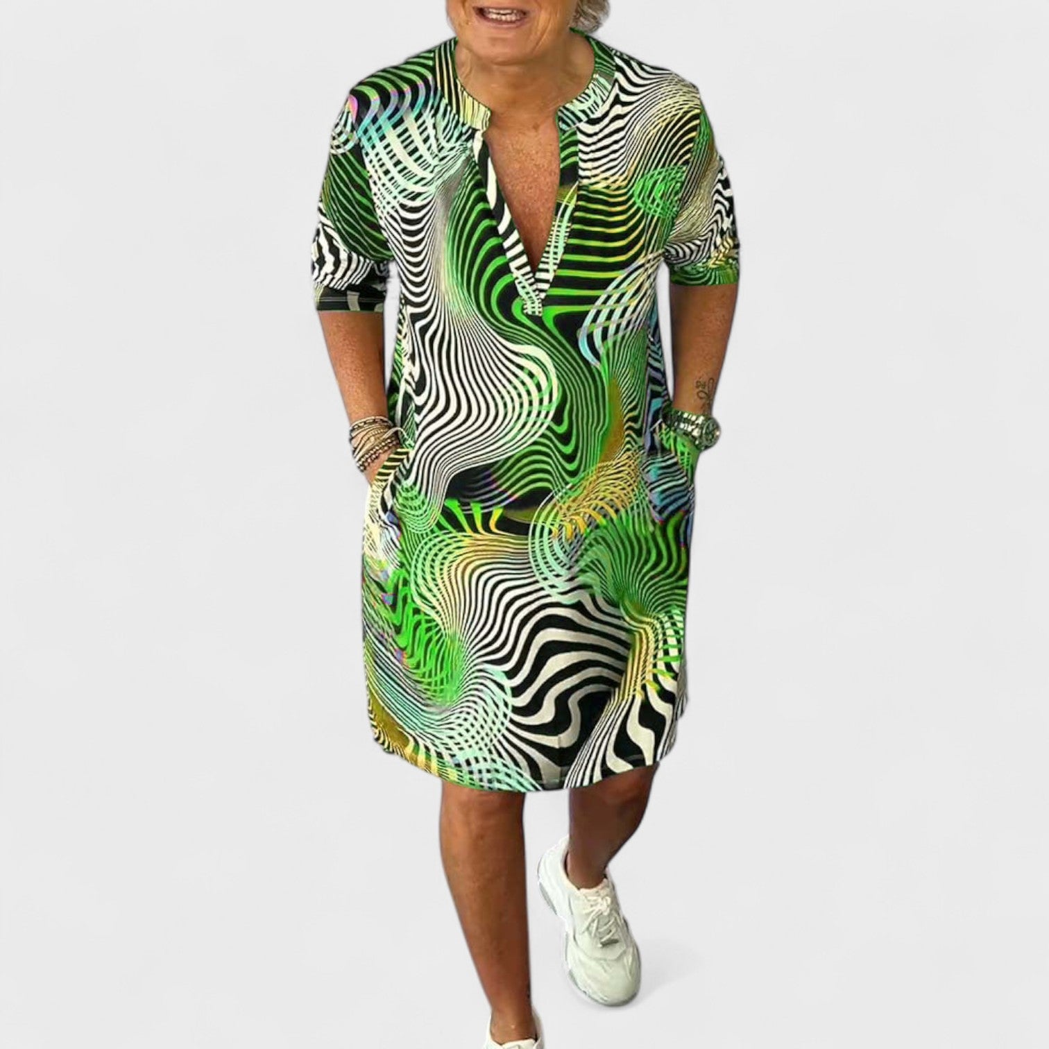 Ria | Vestido Estampado con Cuello en V