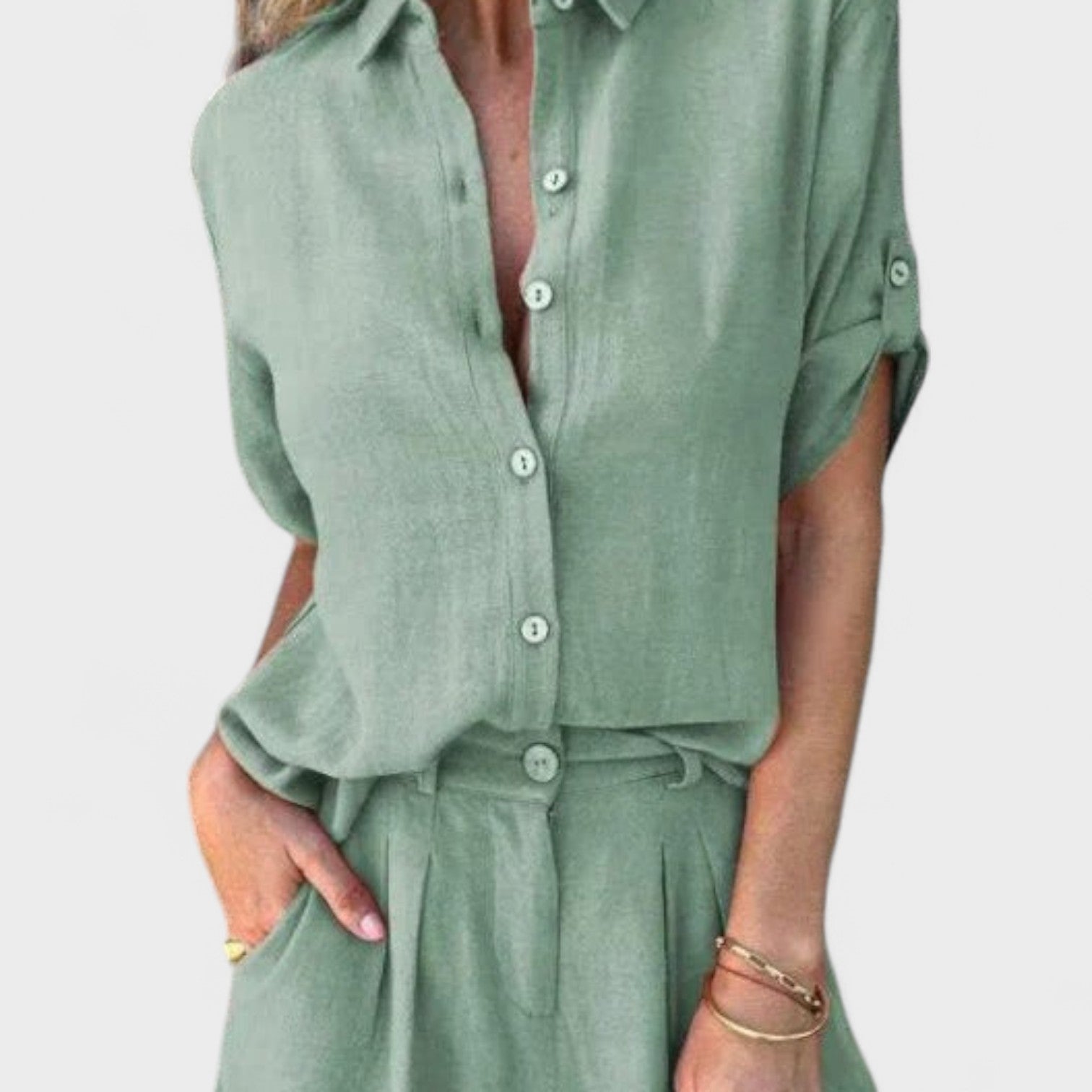 Descubre el equilibrio perfecto entre frescura y elegancia con el Conjunto Rita Diseñado para acompañarte en los días soleados de primavera y las noches tranquilas de verano, este set de lino es tu mejor aliado para sentirte cómoda, ligera y naturalmente sofisticada. Ideal para relajarte en casa o para salir sin esfuerzo pero con estilo.