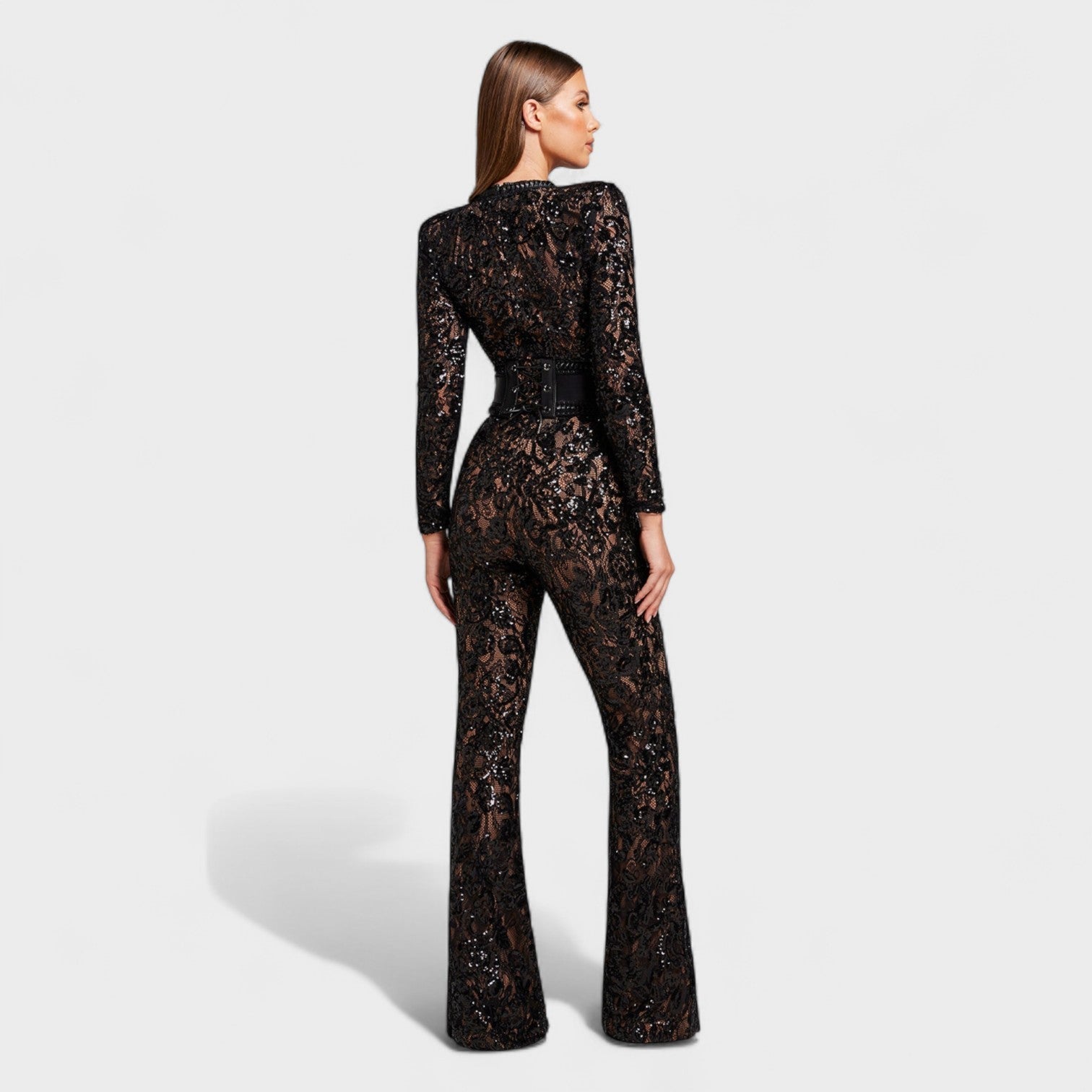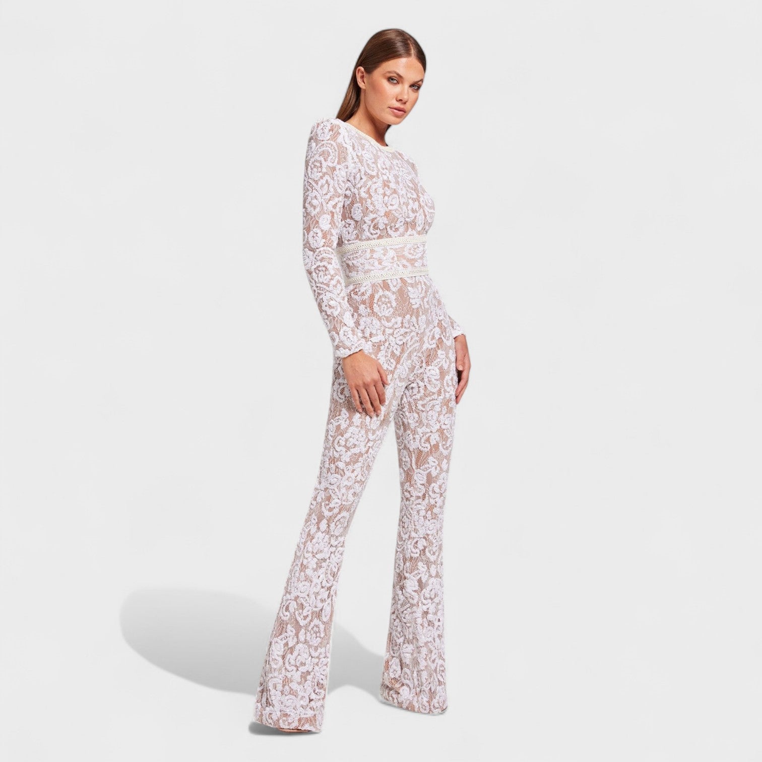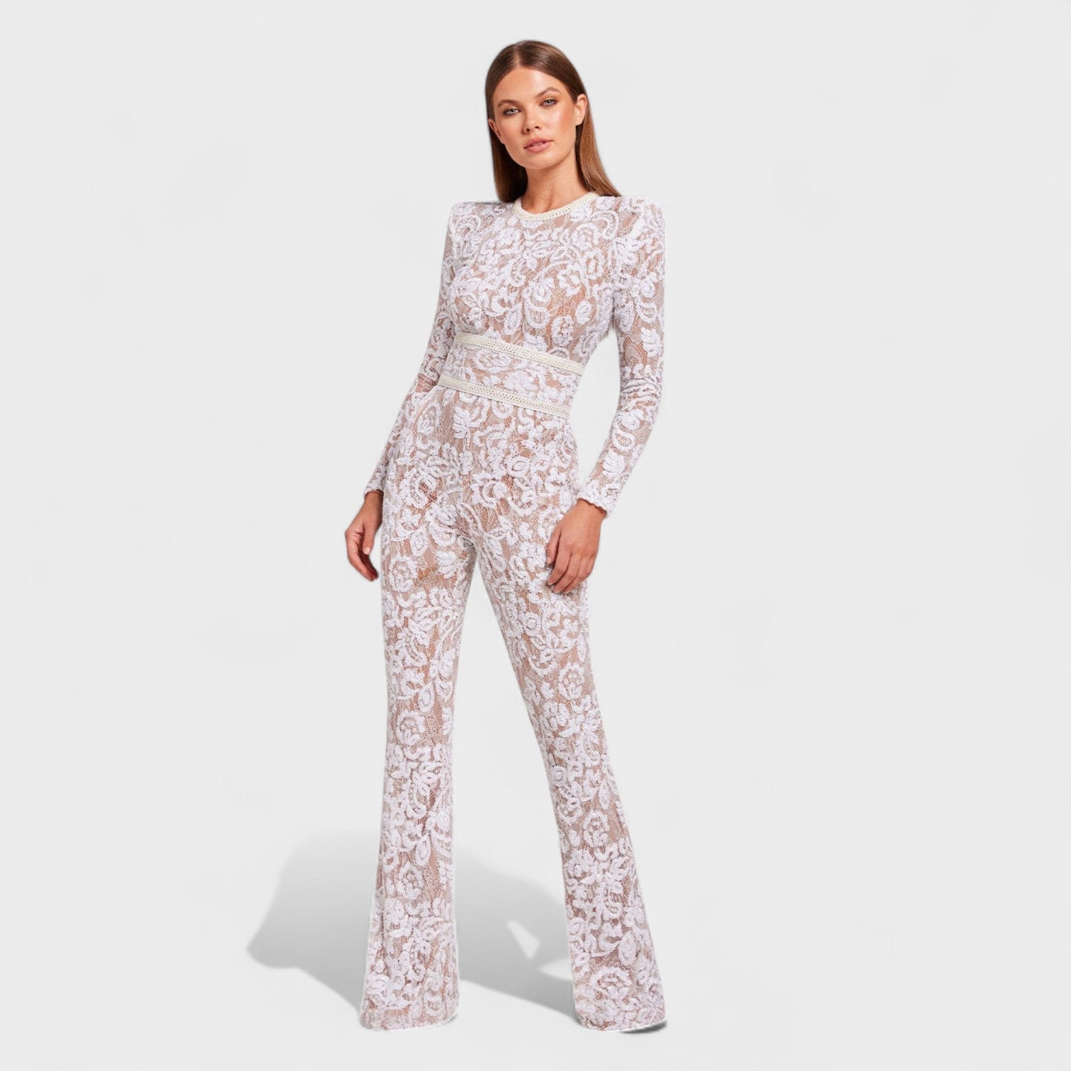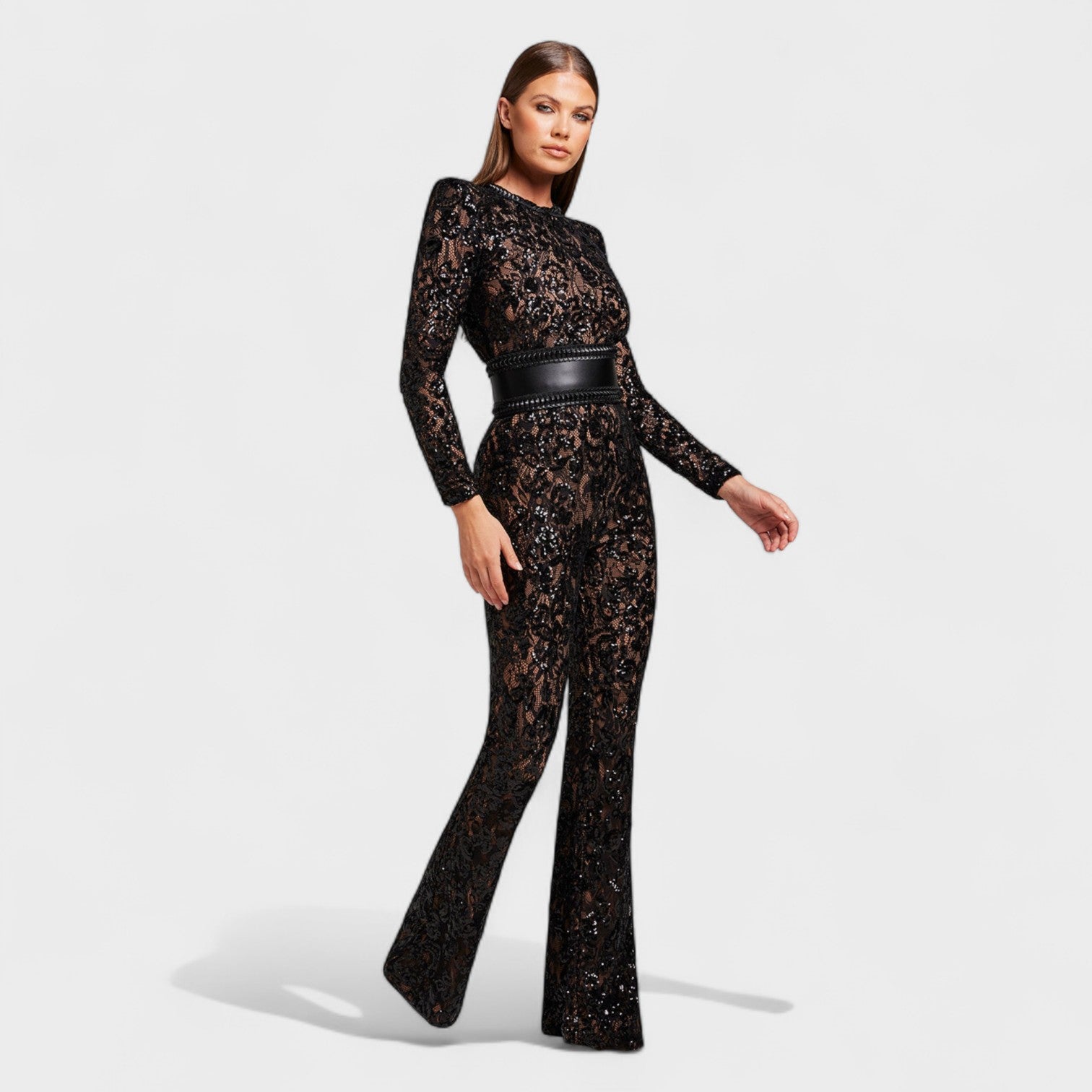 El mono Amelia de RitaBarcelona es una declaración de fuerza femenina. Su encaje floral semitransparente y su cinturón corsé realzan la figura con una mezcla irresistible de elegancia y atrevimiento. Diseñado para mujeres que no temen destacar, ya sea en eventos, fiestas o una noche inolvidable.