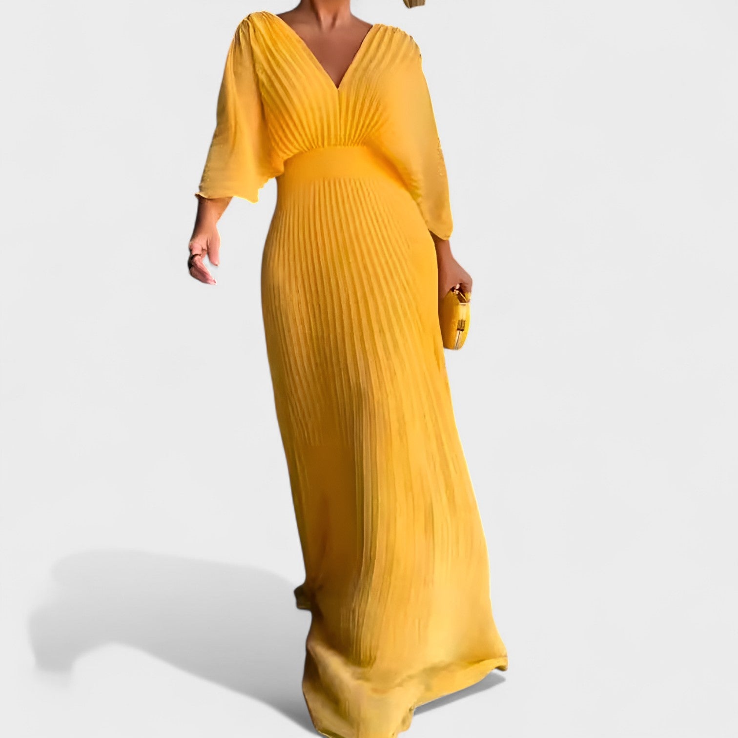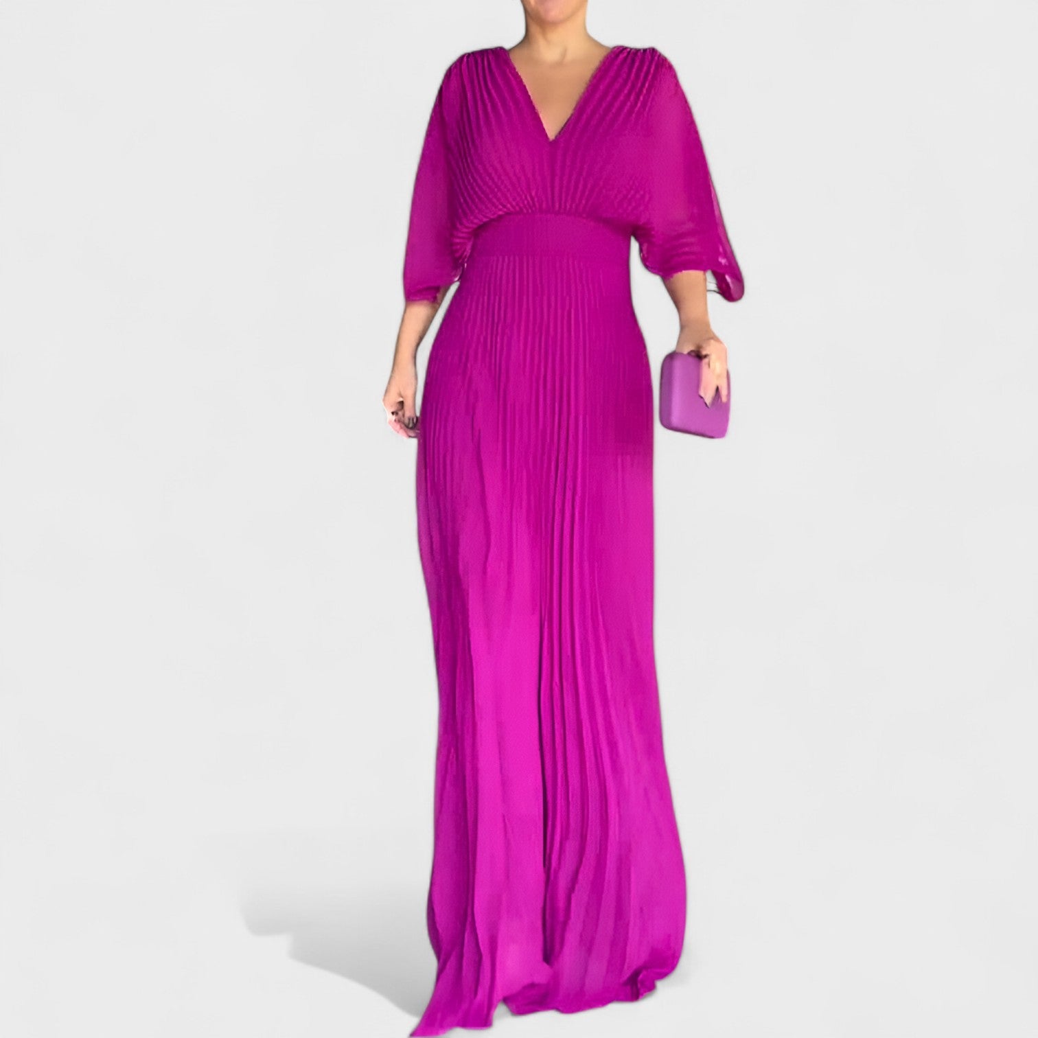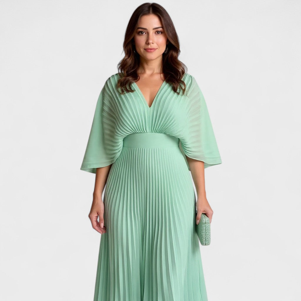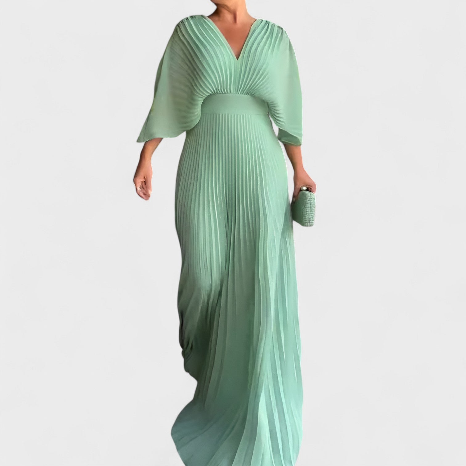 El vestido Gala transforma cualquier ocasión en un evento memorable. Su tejido plisado con caída fluida y escote cruzado realza tu silueta con sofisticación sin esfuerzo.