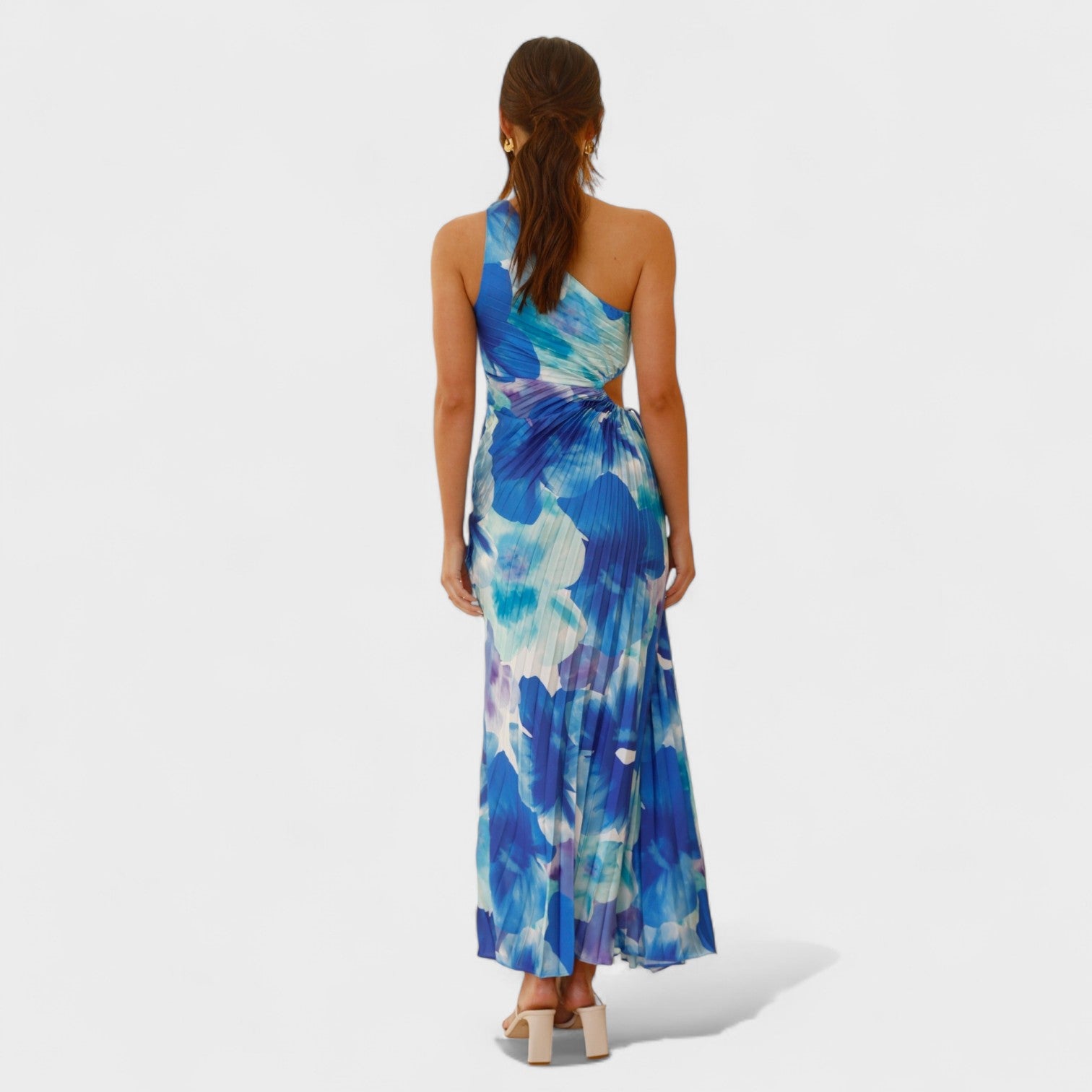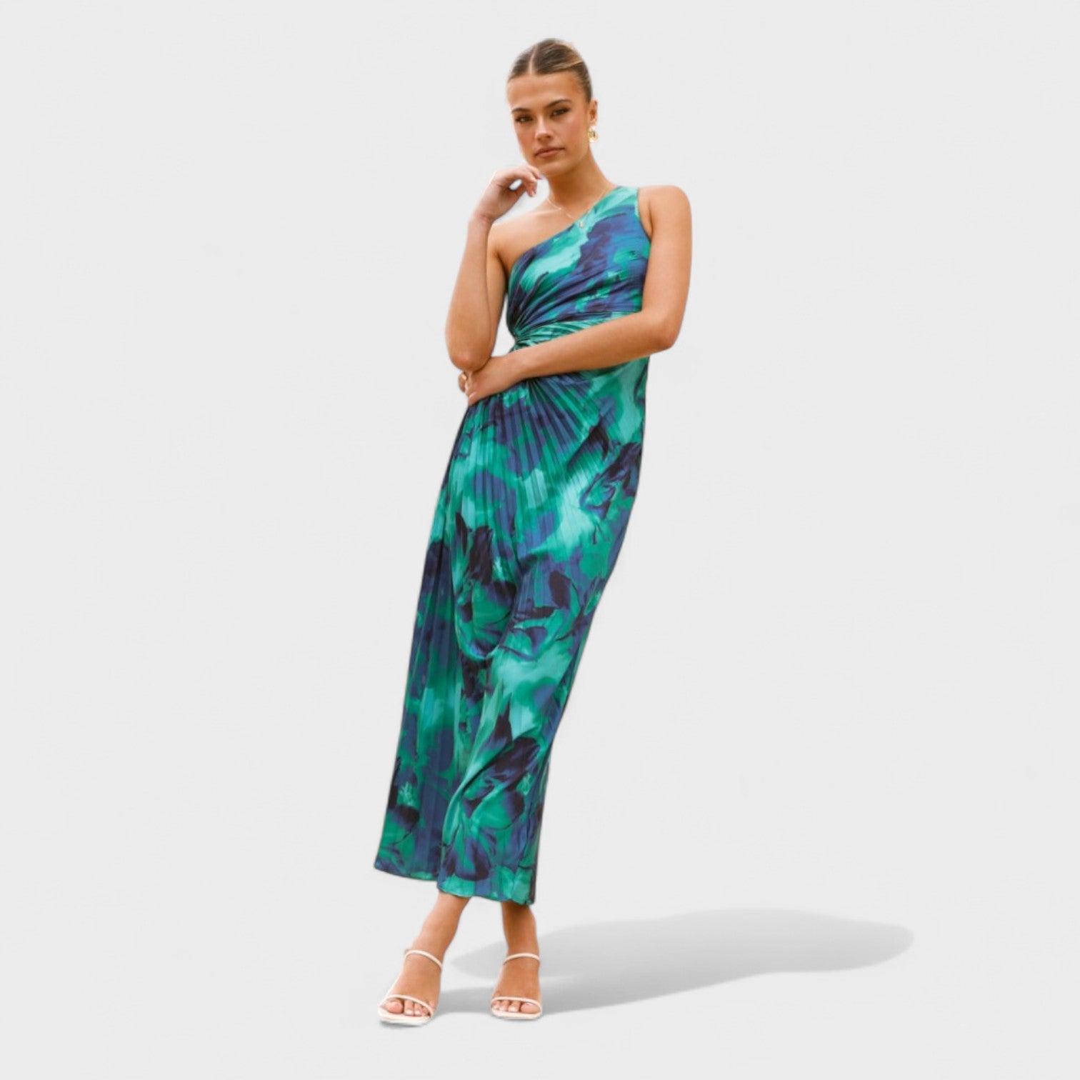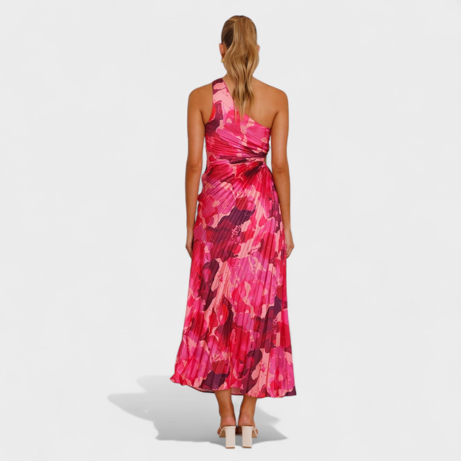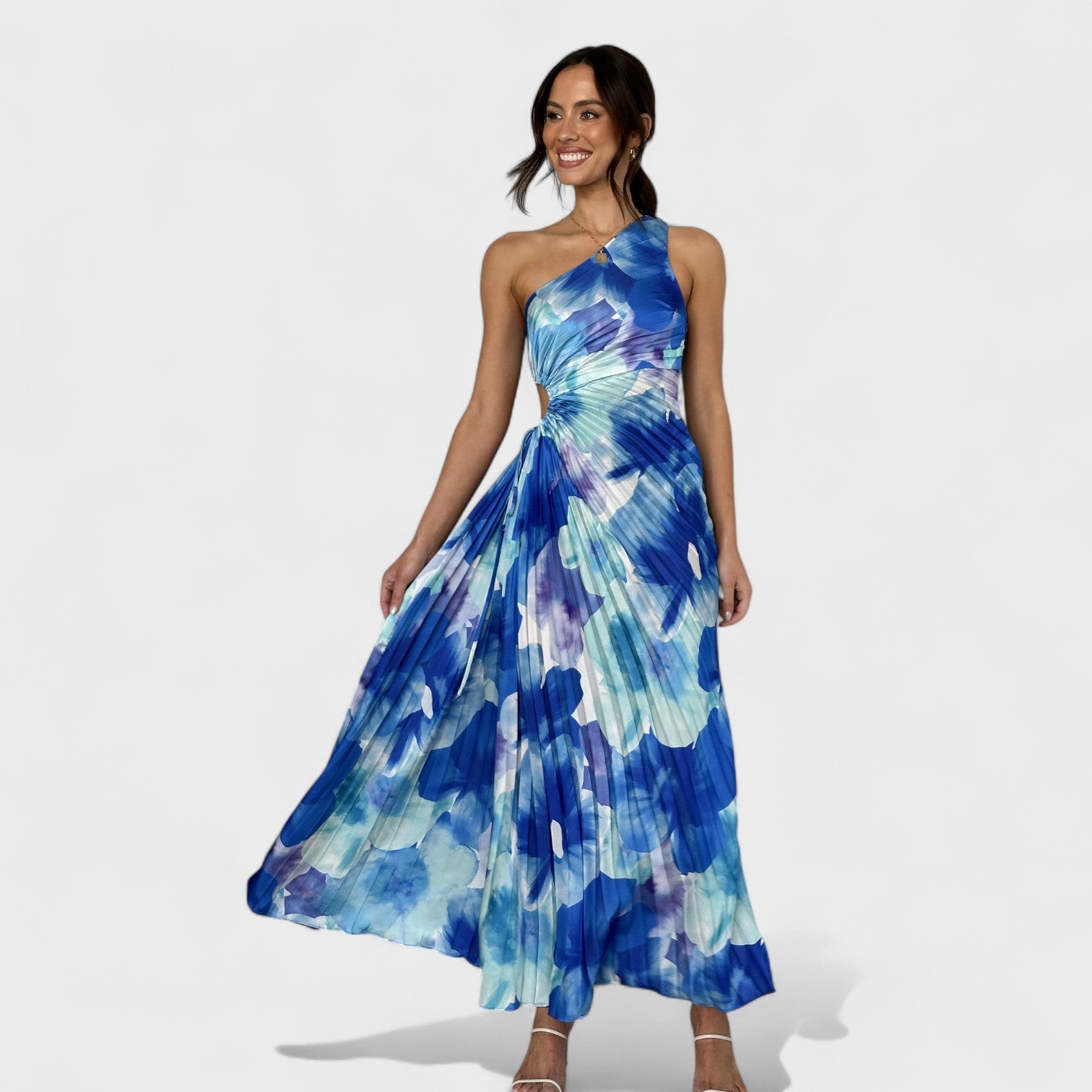 Diseñado para robar miradas y dejar huella, el vestido Maribel fusiona el corte asimétrico con un estampado floral que evoca libertad y sofisticación. Su tejido plisado realza el movimiento natural del cuerpo, haciéndote sentir ligera y elegante en cada paso.