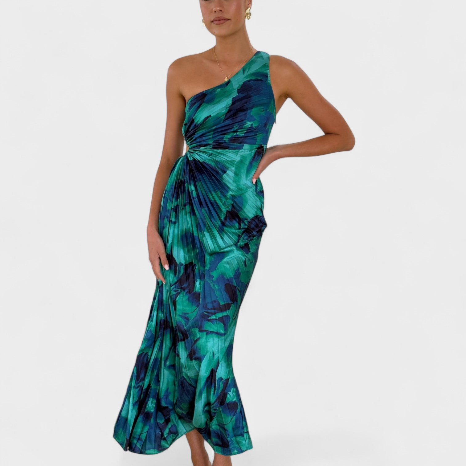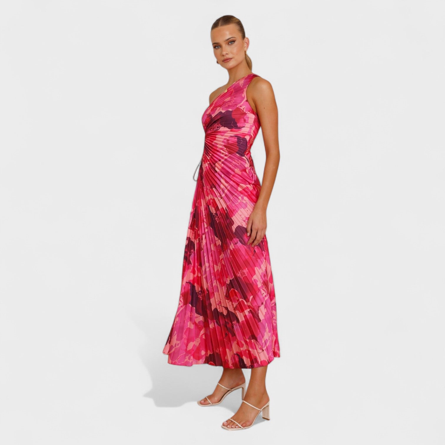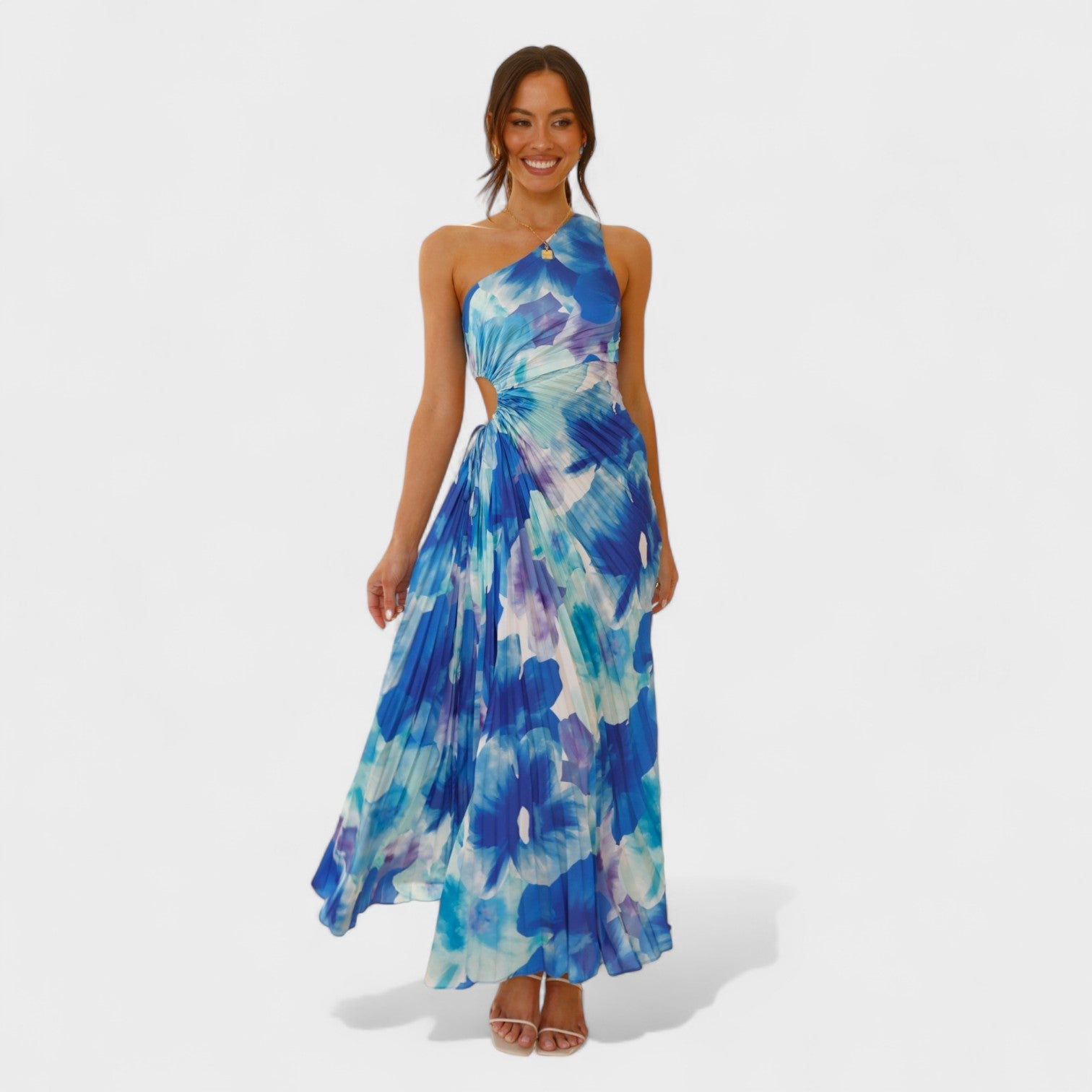 Diseñado para robar miradas y dejar huella, el vestido Maribel fusiona el corte asimétrico con un estampado floral que evoca libertad y sofisticación. Su tejido plisado realza el movimiento natural del cuerpo, haciéndote sentir ligera y elegante en cada paso.