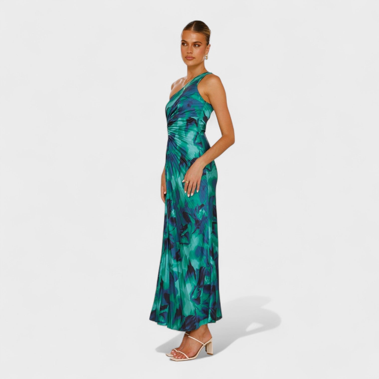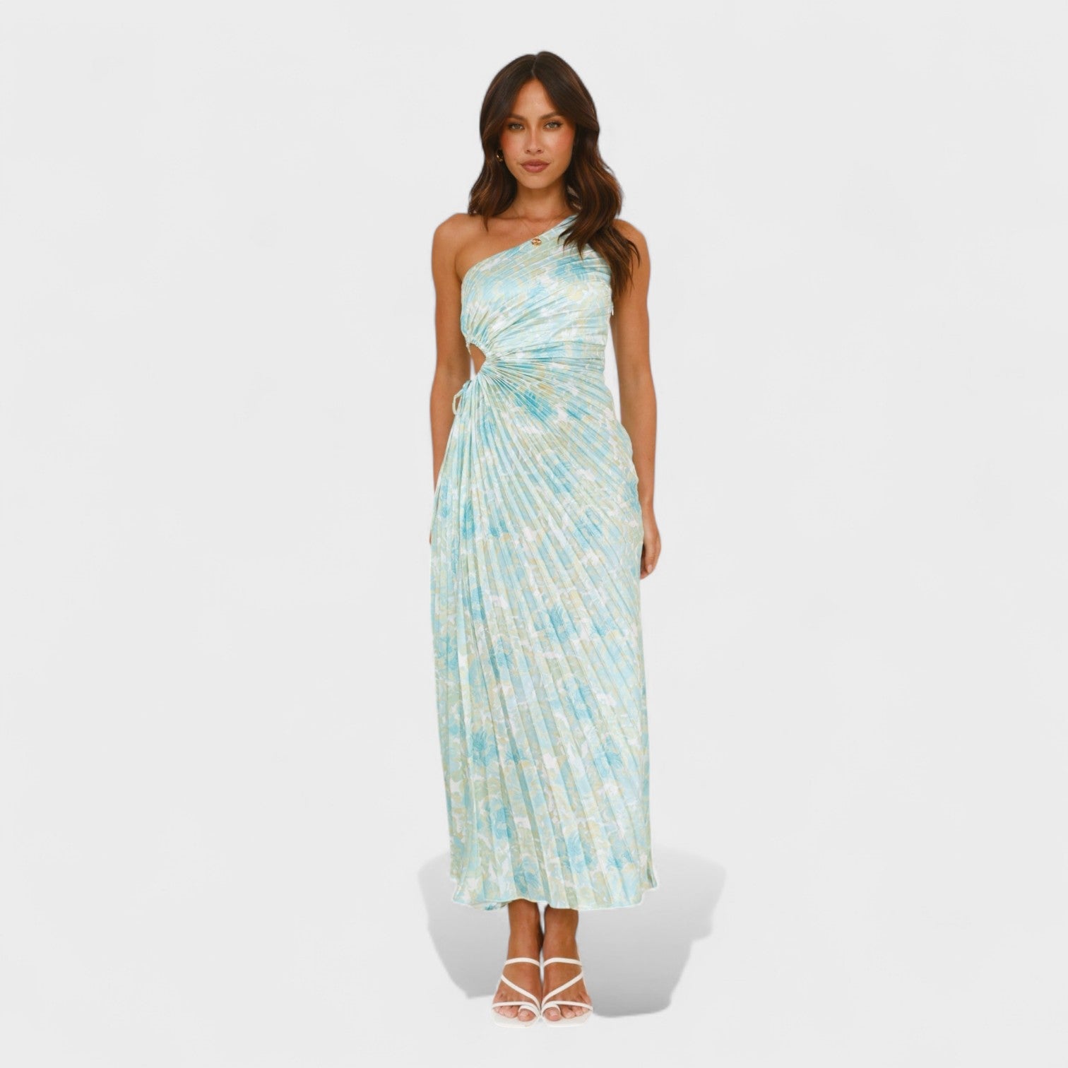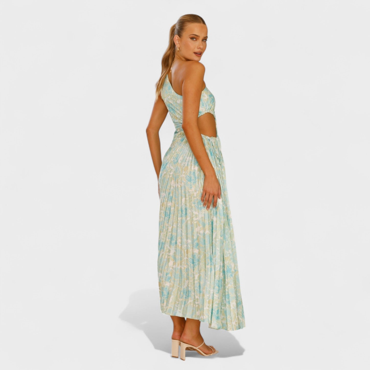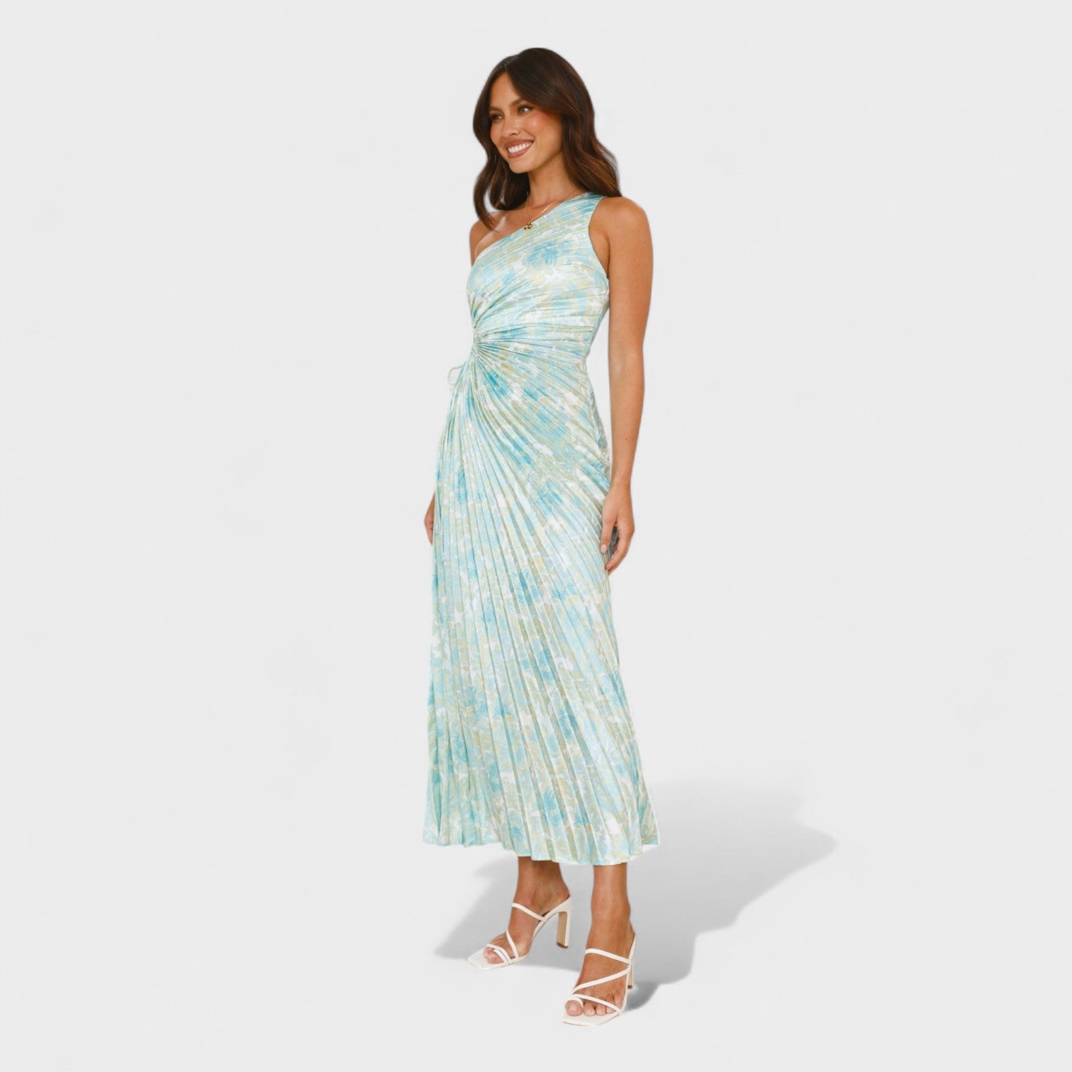 Diseñado para robar miradas y dejar huella, el vestido Maribel fusiona el corte asimétrico con un estampado floral que evoca libertad y sofisticación. Su tejido plisado realza el movimiento natural del cuerpo, haciéndote sentir ligera y elegante en cada paso.