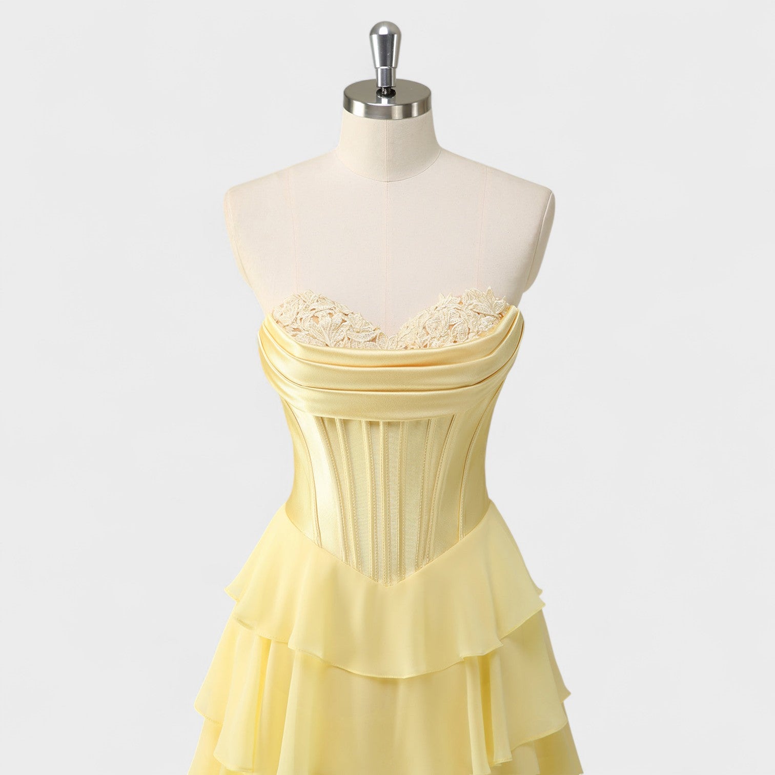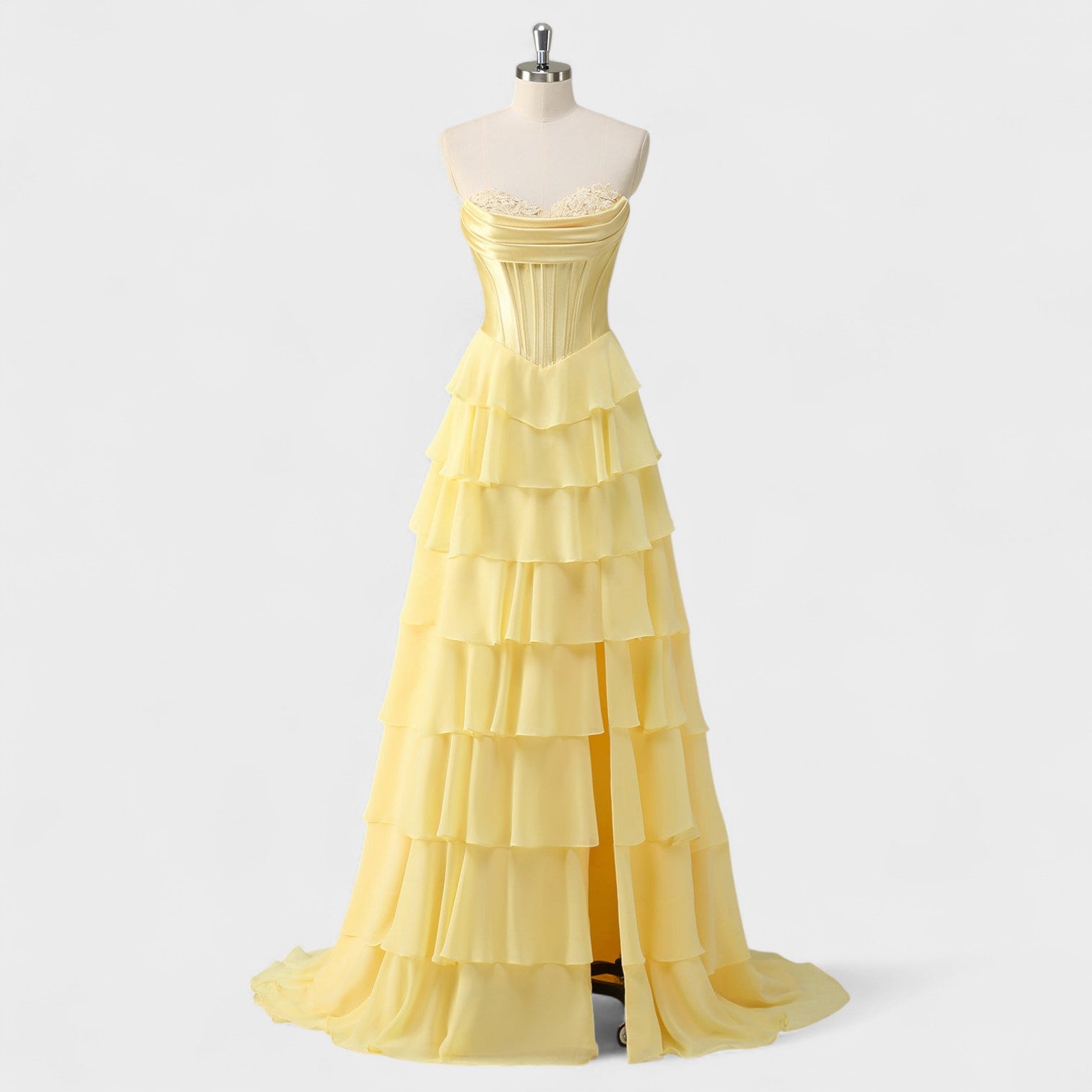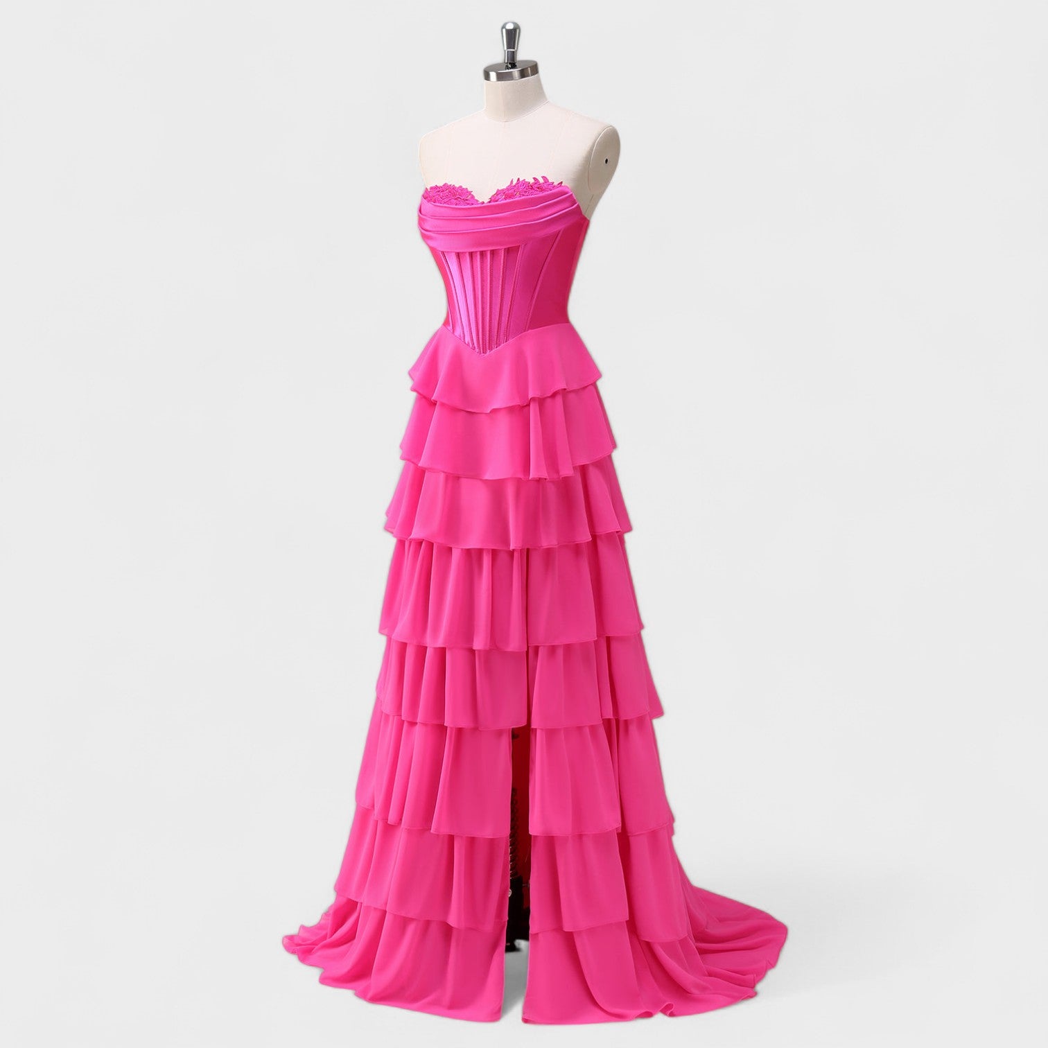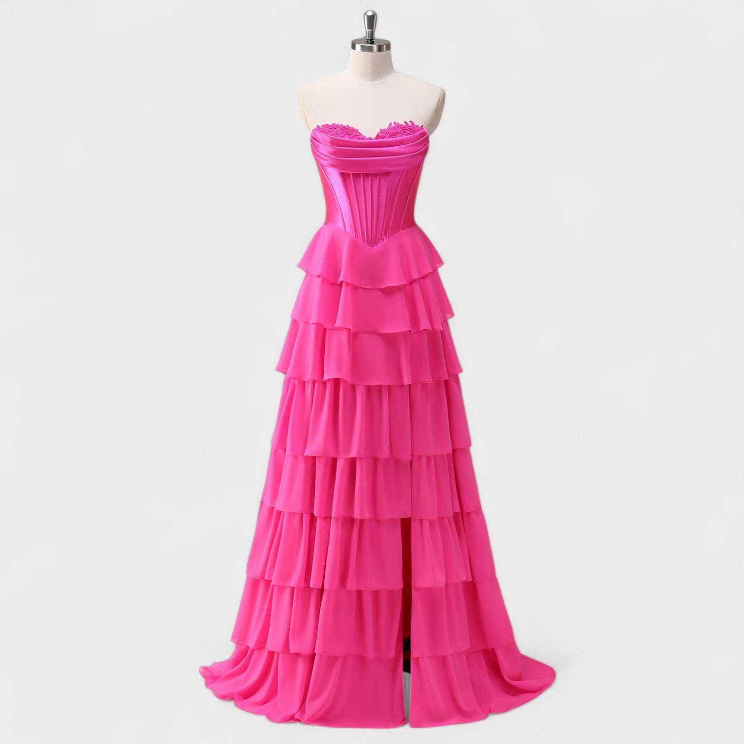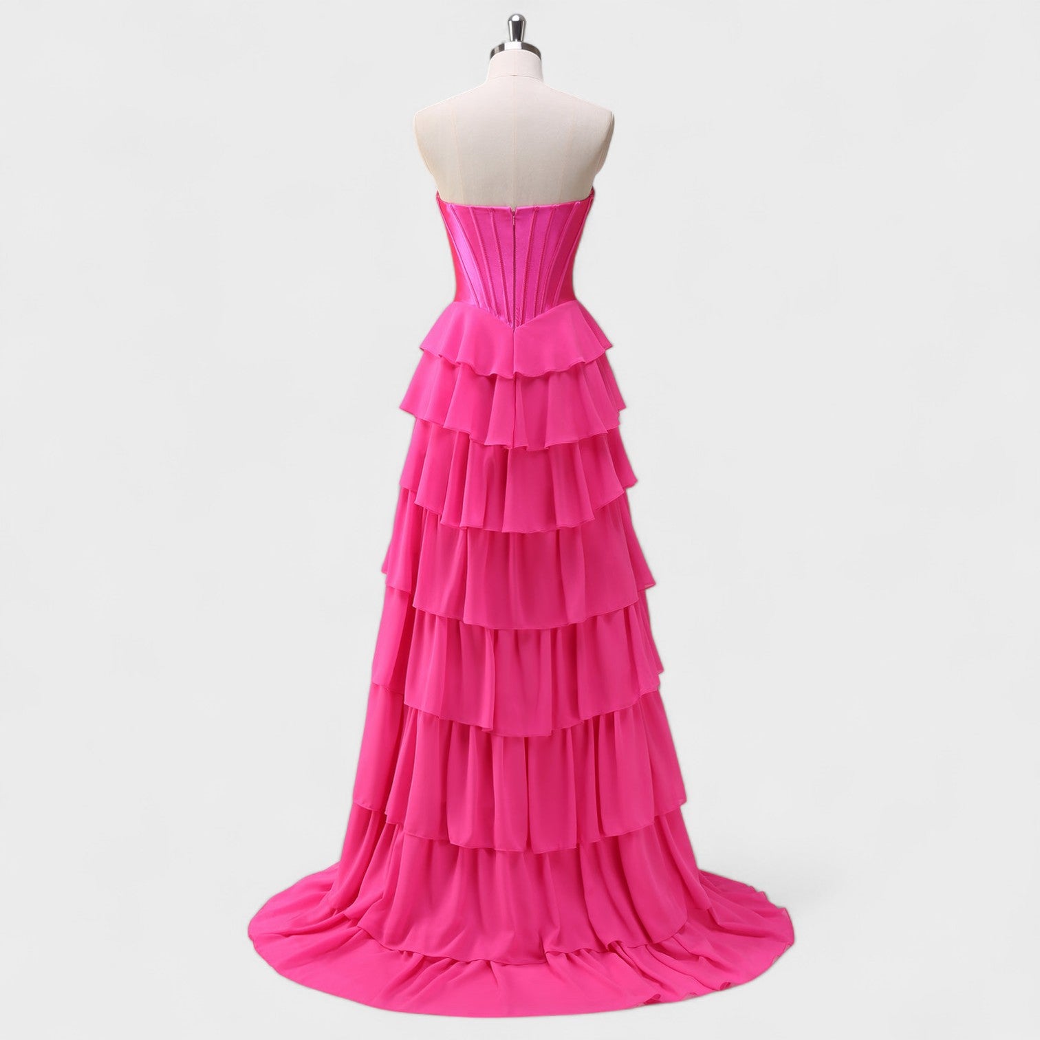 - Falda en capas vaporosas que fluyen con cada paso — ideal para brillar en eventos inolvidables